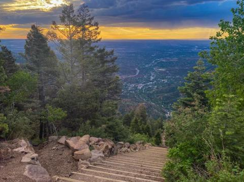 Hike the Manitou Incline (Manitou Springs, Free, 40 min drive). This hike is only for the adventurous and very physically fit. It is a 4-mile round trip hike with 2,000 ft of elevation gain. The elevation gain all comes in the first mile- it’s less like hiking a trail and much more like climbing stairs straight up.